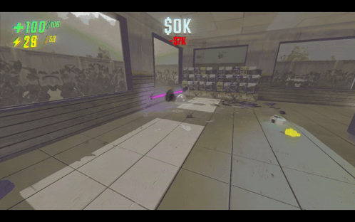 Content Description: a screenshot of a video game with a sign that says $ ok on it