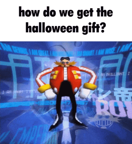 Content Description: a picture of a cartoon character with the words how do we get the halloween gift