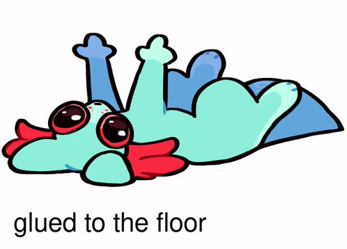 Content Description: a drawing of a lizard laying on its back with the words glued to the floor below it