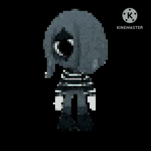 Content Description: a pixel art of a bird surrounded by purple and green flowers with a k in the corner