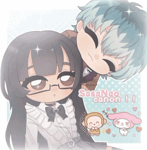 Content Description: a drawing of a boy and a girl with sasaneo canon written on it