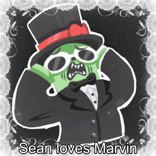 Content Description: a cartoon of a man in a tuxedo and top hat with the words sean loves marvin below him