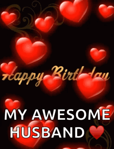 Content Description: a happy birthday card for my awesome husband with red hearts