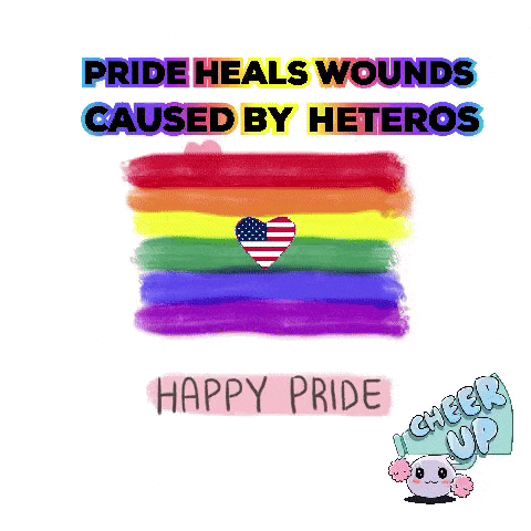 Content Description: a poster that says pride heals wounds caused by heteros happy pride