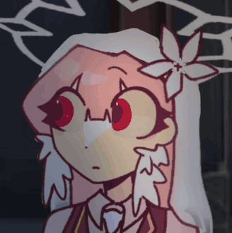 Content Description: a cartoon character with red eyes and a flower in her hair