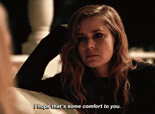 Content Description: a woman with long red hair says i hope that 's some comfort to you