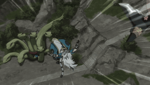Content Description: an aerial view of a cartoon scene with a monster and a cloud