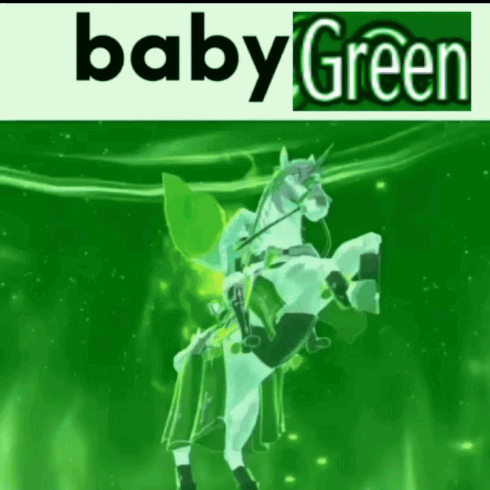 Content Description: a picture of a person riding a unicorn with the words baby green below it