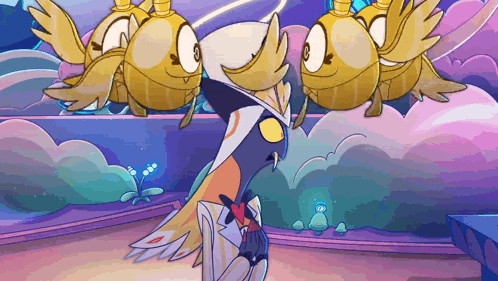 Content Description: a cartoon drawing of a bird standing in front of a purple background