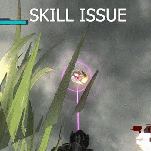 Content Description: a screenshot of a video game with the words skill issue on the top