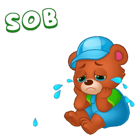 Content Description: a cartoon teddy bear is crying and sob is written above him