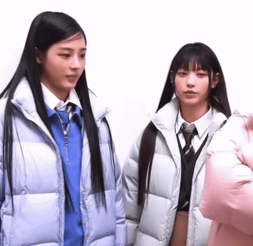 Content Description: two girls standing next to each other with one wearing a blue shirt and tie