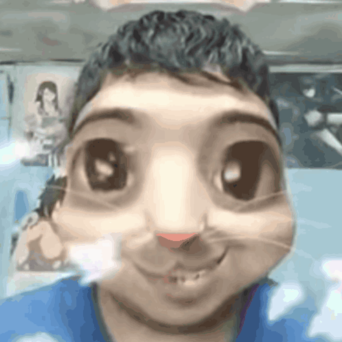 Content Description: a close up of a person 's face with a cat 's nose on it