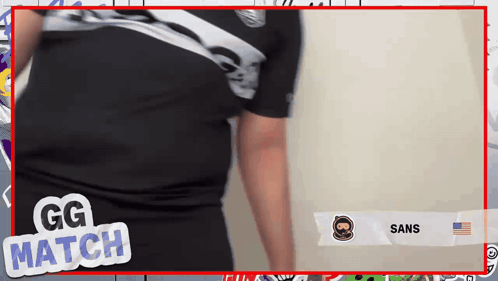 Content Description: a man in a black shirt is standing in front of a screen that says ' gg match ' on it