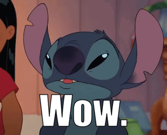 Content Description: stitch from lilo and stitch says wow in a cartoon