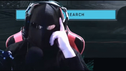 Content Description: a man wearing headphones and a mask is sitting in front of a search bar and says stop .