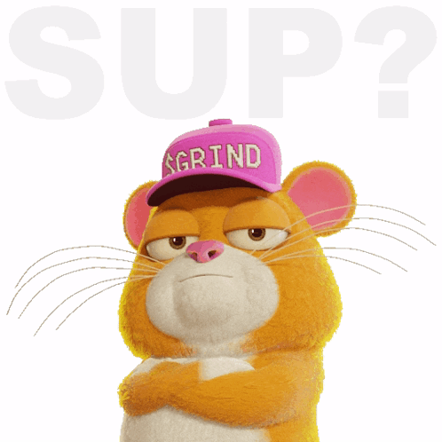 Content Description: a stuffed animal with a pink hat that says grind on it