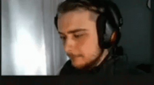 Content Description: a man with a beard is wearing headphones and looking at a computer screen .