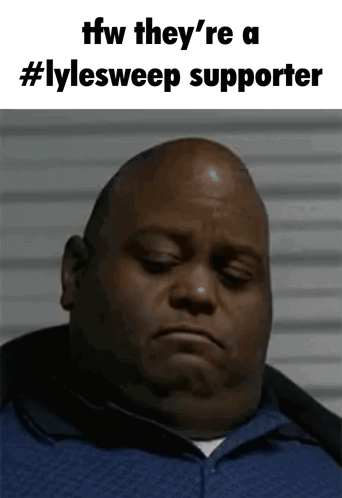 Content Description: a man with a sad look on his face and the words tfw they 're a #lylesweep supporter above him