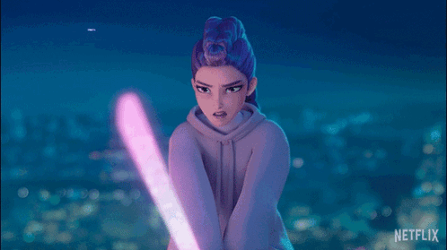 Content Description: a poster for netflix shows a girl holding a pink light saber