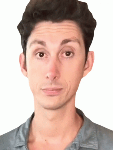 Content Description: a close up of a man 's face with a gray shirt