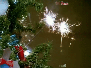 Content Description: a christmas tree with sparklers on it and a red white and blue star