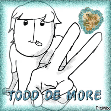 Content Description: a drawing of a person giving a peace sign with the words todd de more below