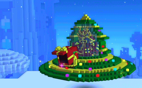 Content Description: a christmas tree made out of blocks with a gift box in it