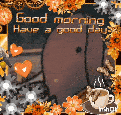 Content Description: a good morning have a good day greeting card with a cup of coffee