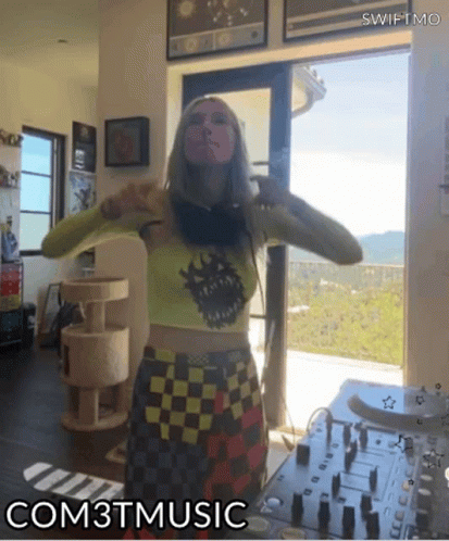 Content Description: a woman wearing headphones is standing in front of a mixer and the words com3tmusic are on the bottom