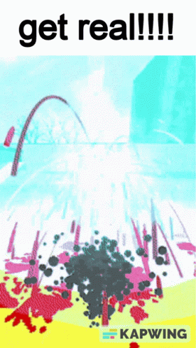 Content Description: a poster that says " get real !!! " on top of a colorful background