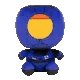 Content Description: a blue stuffed animal with a yellow circle in the middle of it 's head .
