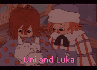 Content Description: a cartoon of two dolls with the words uni and luka on the bottom