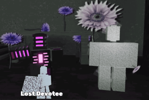 Content Description: a purple flower with the words lost devotee on the bottom right