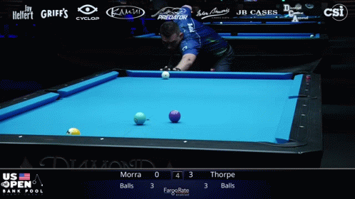Content Description: a pool table with the words us open bank pool championship