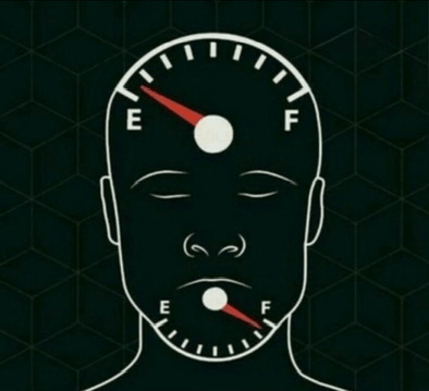 Content Description: a drawing of a man 's face with a gauge pointing to e and f