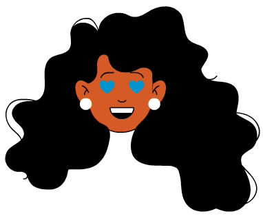 Content Description: a cartoon illustration of a woman with heart shaped eyes and earrings .