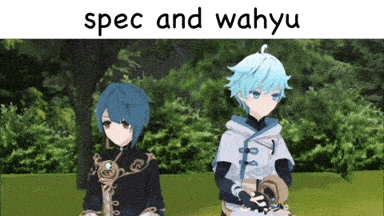 Content Description: two anime characters are standing next to each other and the words spec and wahyu are on the bottom
