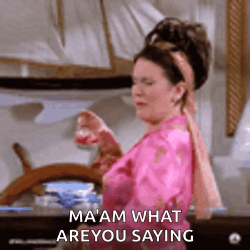 Content Description: a woman in a pink robe is saying ma 'am what are you saying ..