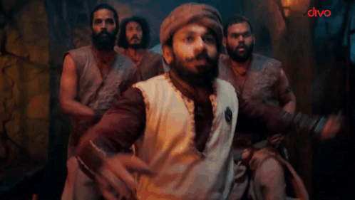 Content Description: a man with a beard is standing in front of a group of men and says wait what ?