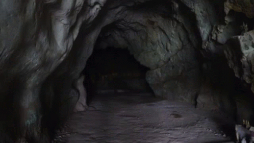 Content Description: a person in a cave wearing a shirt that says ' kemper scher '