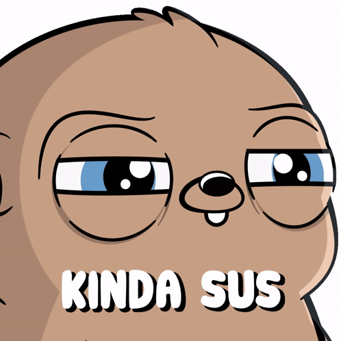 Content Description: a cartoon of a sloth with kinda sus written on it