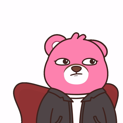 Content Description: a cartoon drawing of a pink teddy bear wearing a black jacket