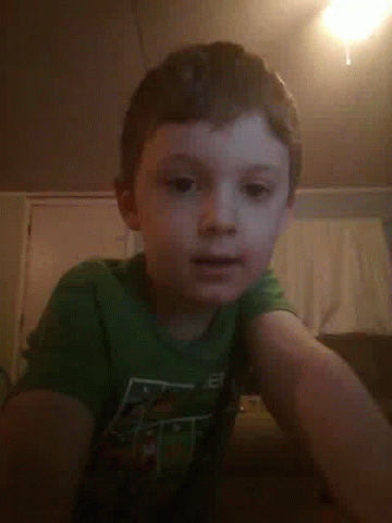 Content Description: a young boy in a green shirt is taking a selfie in a room .