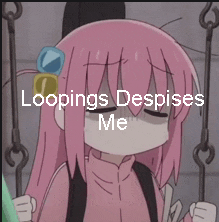 Content Description: a girl with pink hair is sitting on a swing with the words loopings despises me