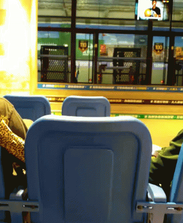 Content Description: a person sitting in a stadium watching a game with a sign that says rio on it