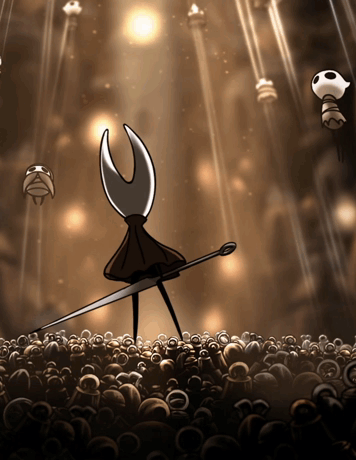 Content Description: a cartoon drawing of a person holding a sword in front of a crowd