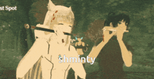 Content Description: a cartoon drawing of a girl playing a flute and the word shminty on the bottom