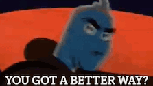 Content Description: a cartoon character with a mask on his face is saying `` you got a better way ? ''