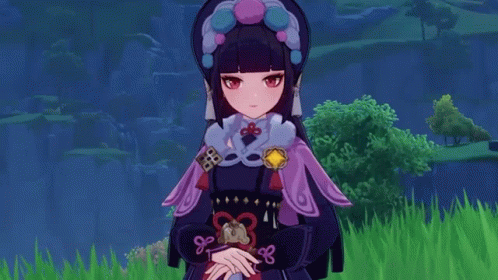 Content Description: a cartoon girl is standing in the grass with her eyes closed .